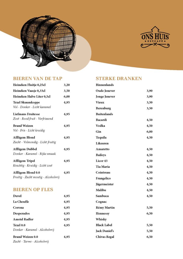 Eetcafé Ons Huis is dé ontmoetingsplek in Cothen voor jong en oud. Voor een goede kop koffie of thee, iets lekkers erbij of een vers belegd broodje. Gewoon gezellig, zoals het bij ons hoort.